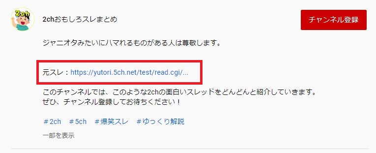 5chのスレ動画をアップロードするときには、まとめサイトと同じように転載元のURLを貼り付けておいてください。