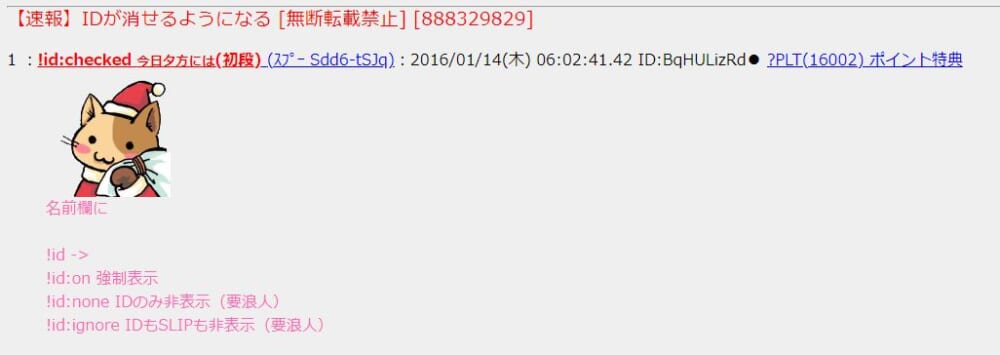 - 書き込みをするとき名前欄に「!id:ignore」というコマンドを入力