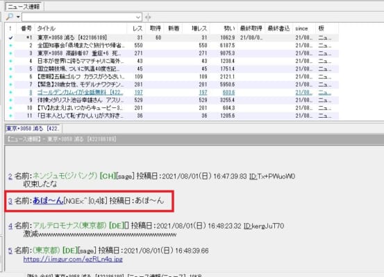 - 「コロナ」が含まれるレスがあぼーん表示になる